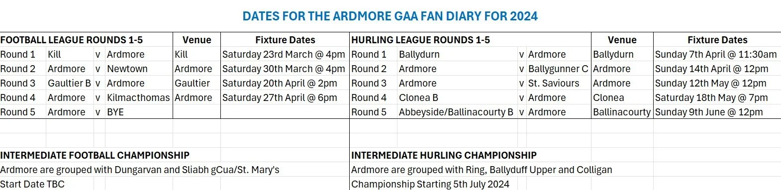 Our camogie squad enjoyed a fun day at Castlecomer Discovery Park last Saturday before returning to the clubhouse for the presentation of their 2023 U15 County Championship medals. A very special guest from the Waterford Senior Camogie Squad, Keeley Corbett Barry was on hand to do the honours. Thanks to Michelle O’Neill and Lindsey Prendergast for organising this memorable day for the girls. Looking forward to even more medal presentations in 2024!